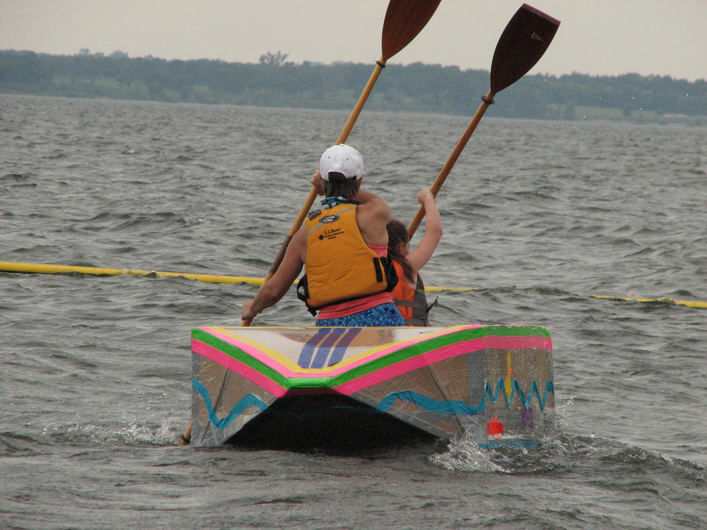 If you’re around Milford Lake at all today (Saturday, August 17), if you head down to the south boat ramp, you’ll be able to check out the cardboard boat races. From noon to 4pm, you can watch (or participate!) in the “Float Your Boat” race where participants ride in boats made entirely from cardboard and duct tape. If you want to whip up your own creation that can hold two people, there are cash prizes available!
